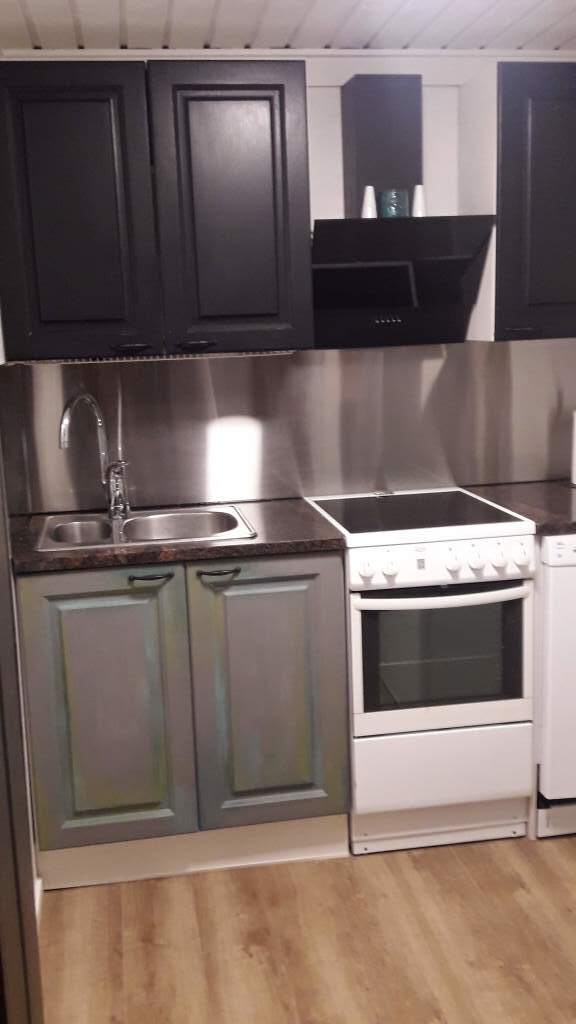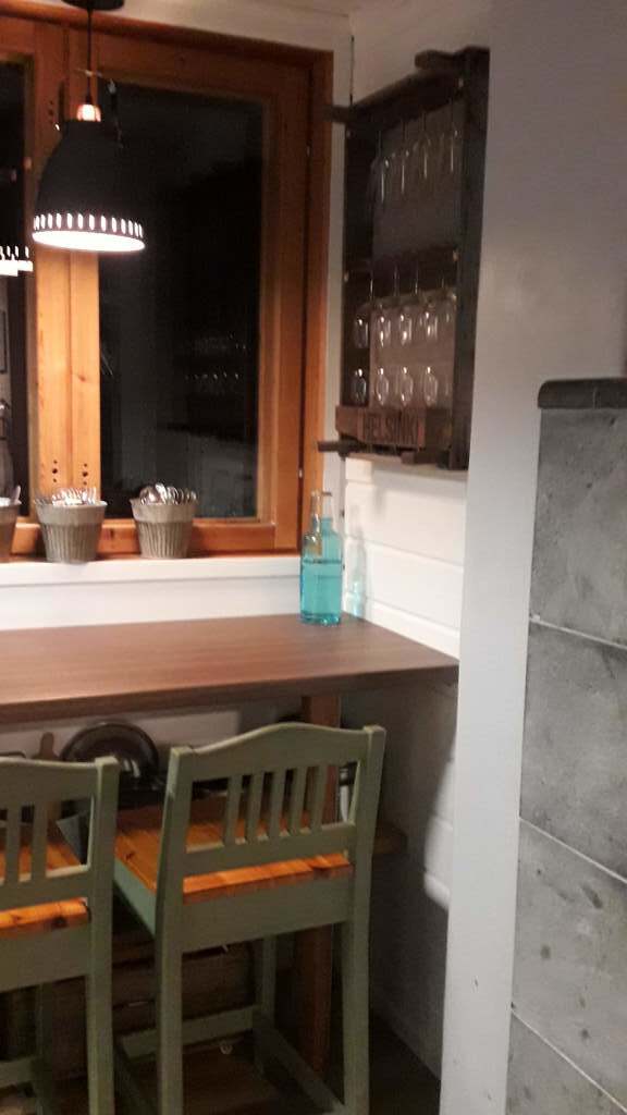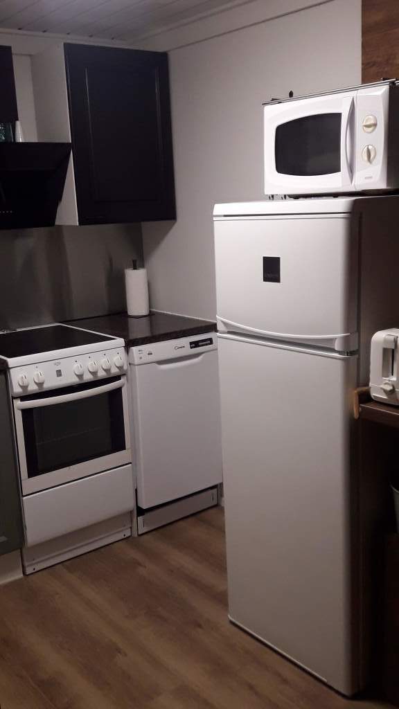 Downstairs has a living room, bedroom, kitchen, electric sauna, toilet and veranda. The cottage has a Tulikivi fireplace. The sauna has a shower. The upstairs is loft-like, with 3 separate sleeping nooks. There is also a toilet upstairs.